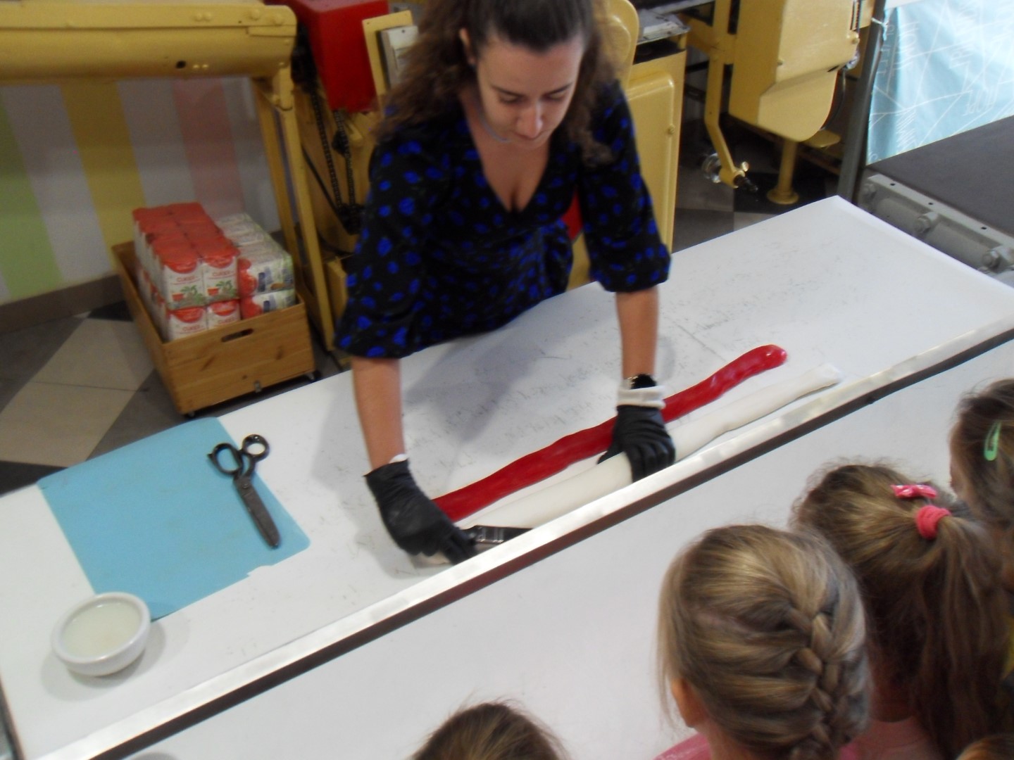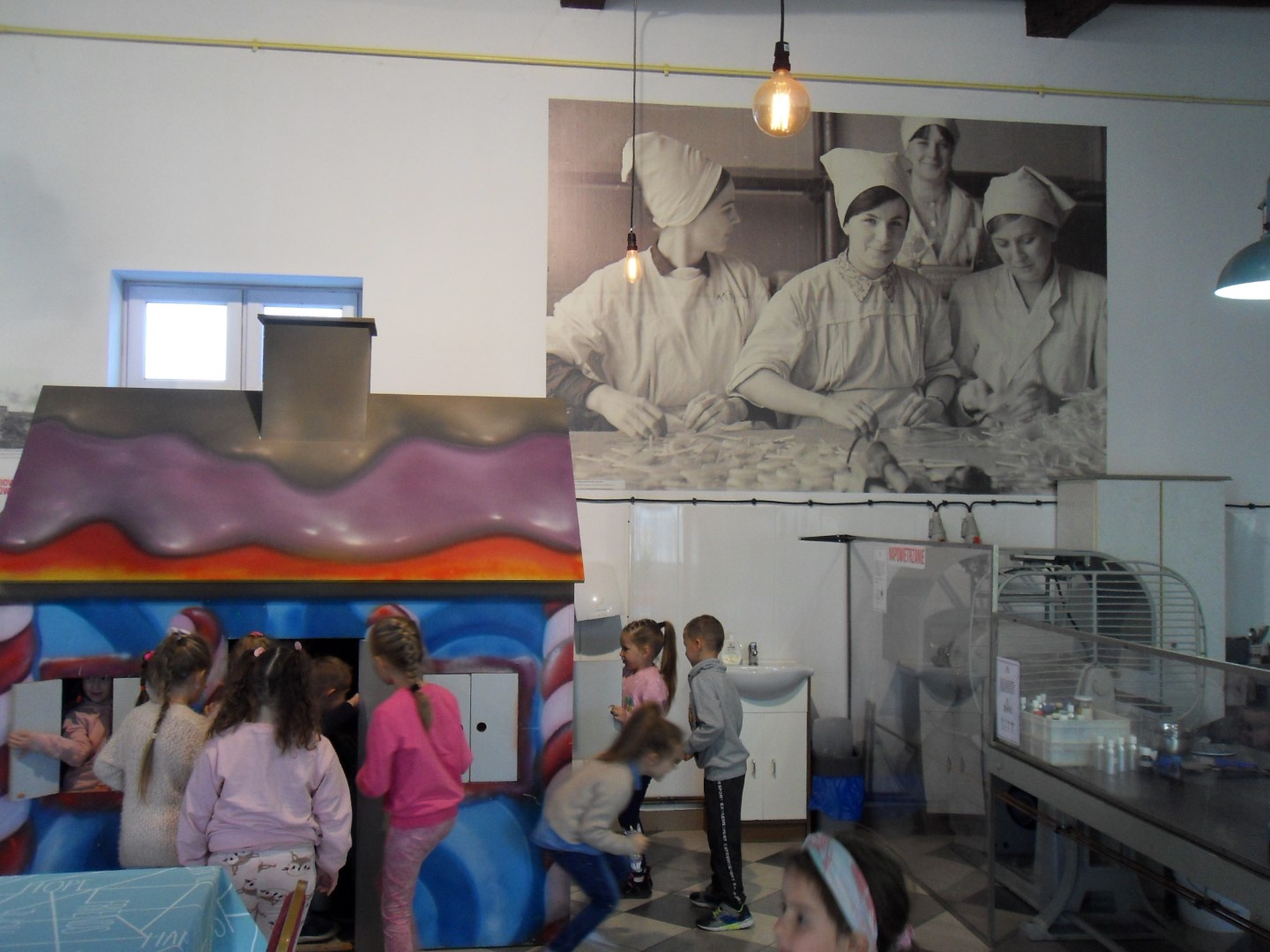 18 października 2024 roku dzieci z grup: Skrzaty i Wesołki wybrały się na wycieczkę do Muzeum Lizaka w Jaśle. Zwiedzanie muzeum zaczęliśmy od sklepiku ze słodkościami, gdzie dzieci mogły oglądać różne kolorowe lizaki. Pani przewodnik w ciekawy sposób opowiedziała o początkach powstawania lizaków oraz jak wyglądała ich produkcja na przestrzeni lat. Zapoznaliśmy się z zawodem cukiernika i karmelarza. Poznaliśmy również proces tworzenia karmelu, barwienia, łączenia w różne kolory. Największą atrakcją dla wszystkich przedszkolaków była możliwość własnoręcznego zrobienia lizaka z przygotowanej masy. W muzeum mogliśmy również posmakować cukrów, z których produkuje się lizaki i powąchać aromatów dodawanych do karmelu, aby nadać mu różne smaki. Potem udaliśmy się na warsztaty robienia pizzy, gdzie bliżej poznaliśmy zawód kucharza. Po wysłuchaniu krótkiej historii o włoskiej pizzy i po dokładnym umyciu rąk każdy otrzymał porcję swojego ciasta i po rozwałkowaniu mógł przyozdobić swoje ciasto sosem pomidorowym, szynką, salami, kukurydzą i serem według własnych pomysłów i smaków. Następnie wszystkie pizze zostały upieczone, a na koniec każdy z apetytem zjadł swoją. Dzieci pełne wrażeń i z uśmiechem na twarzy wróciły do przedszkola.