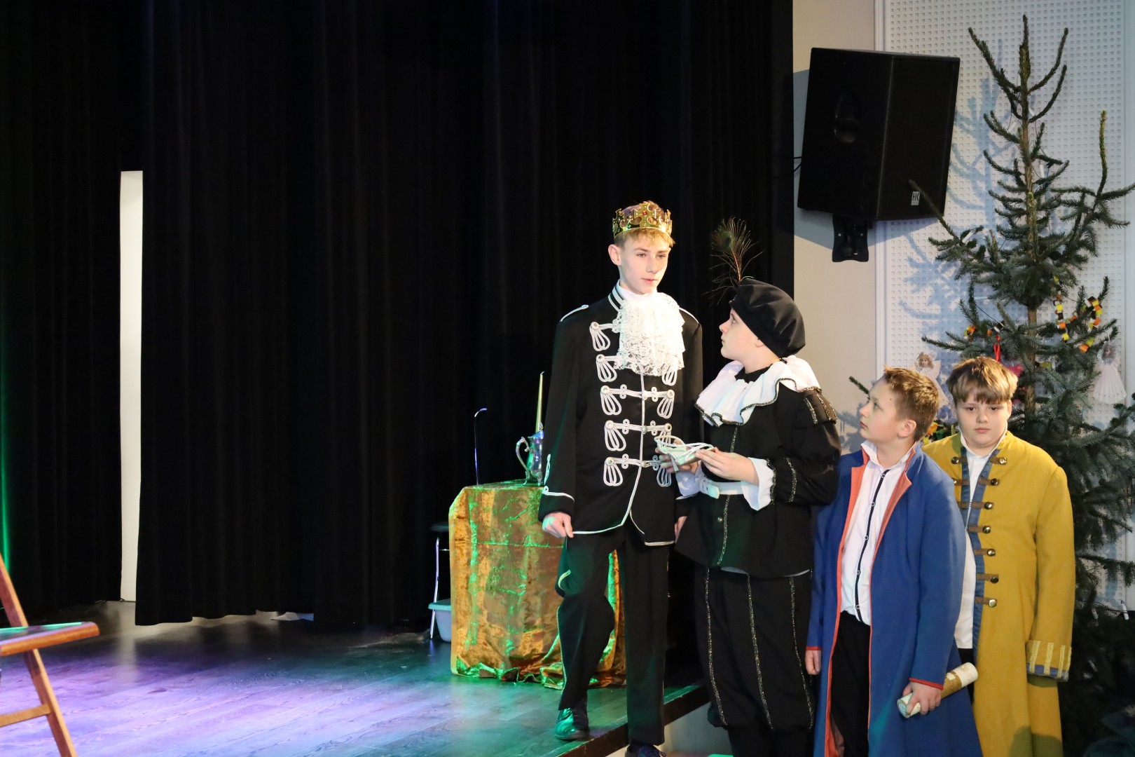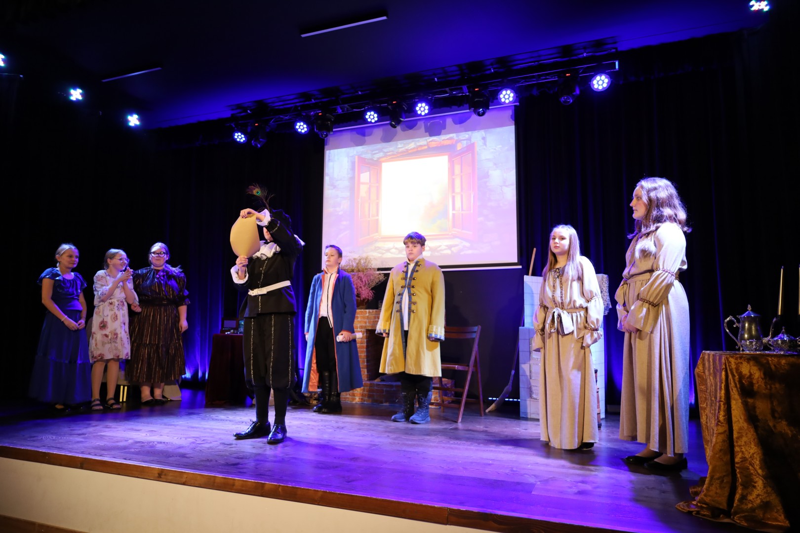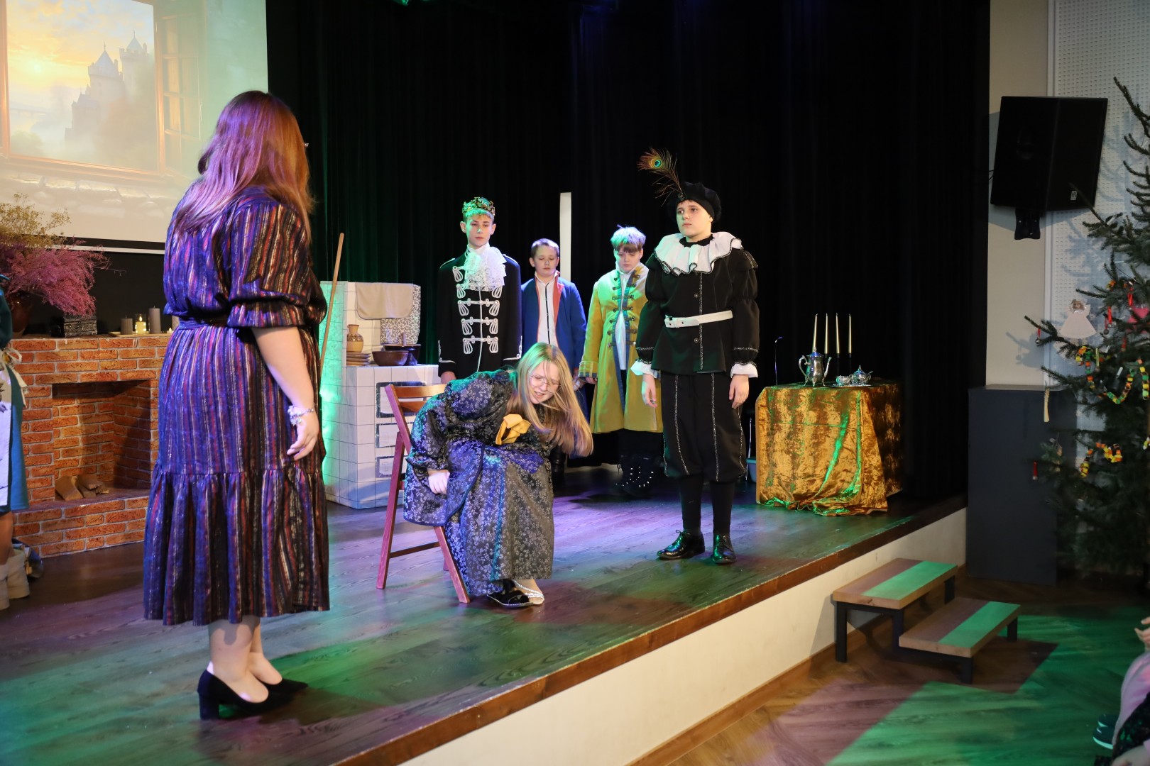 Dzięki uprzejmości p. Dyrektor OKiB w Moszczenicy spektakl mógł zostać zaprezentowany w Domu Młodzieży na scenie z kurtyną. Światła i inne efekty specjalne pozwoliły na to, by przedstawienie było jeszcze bardziej widowiskowe. Uczniowie (uczestnicy zajęć teatralnych) mogli poczuć się jak prawdziwi aktorzy.