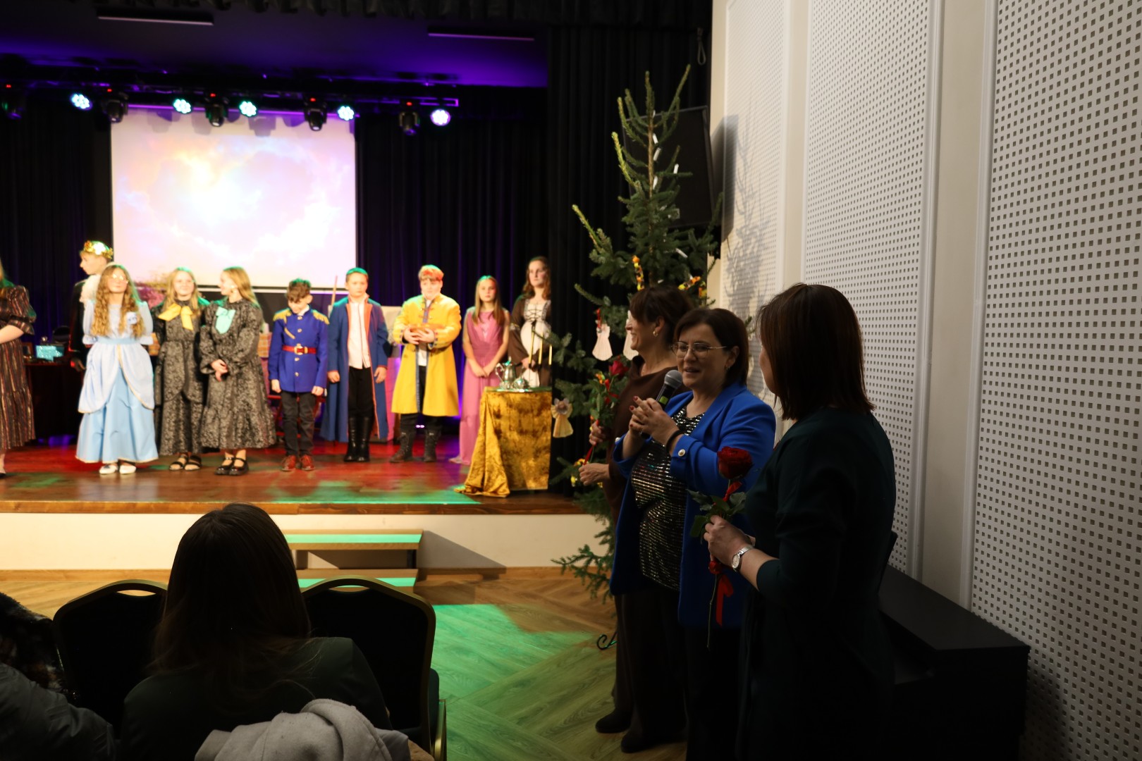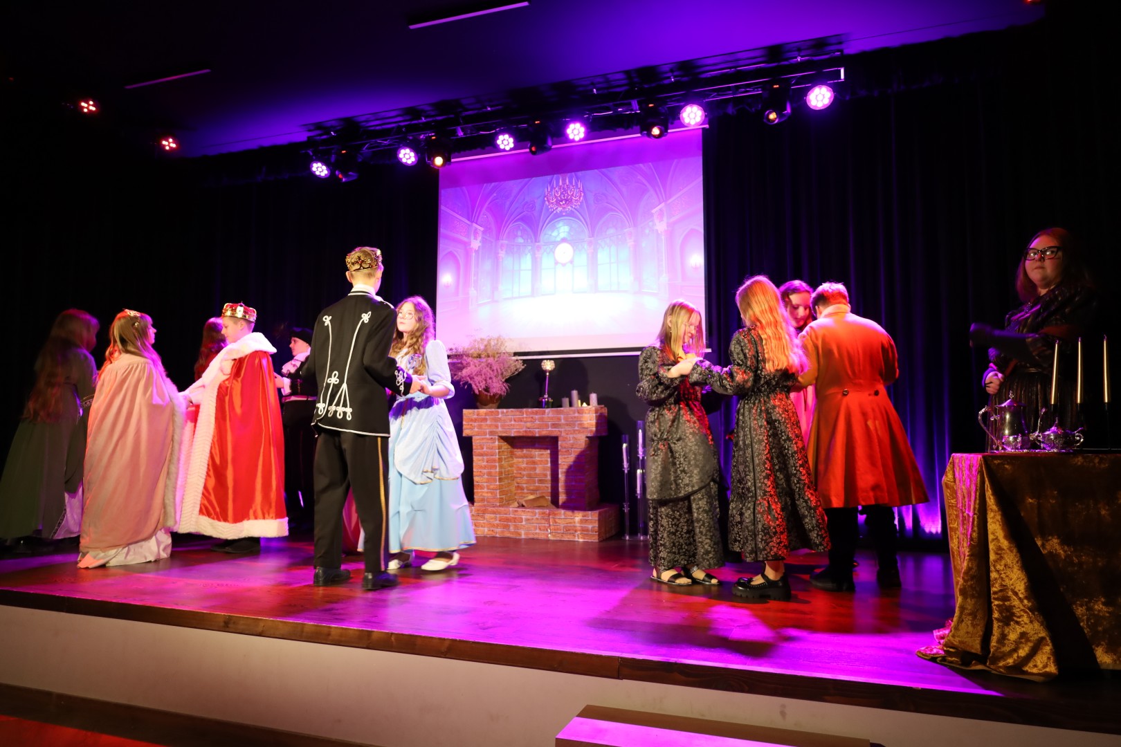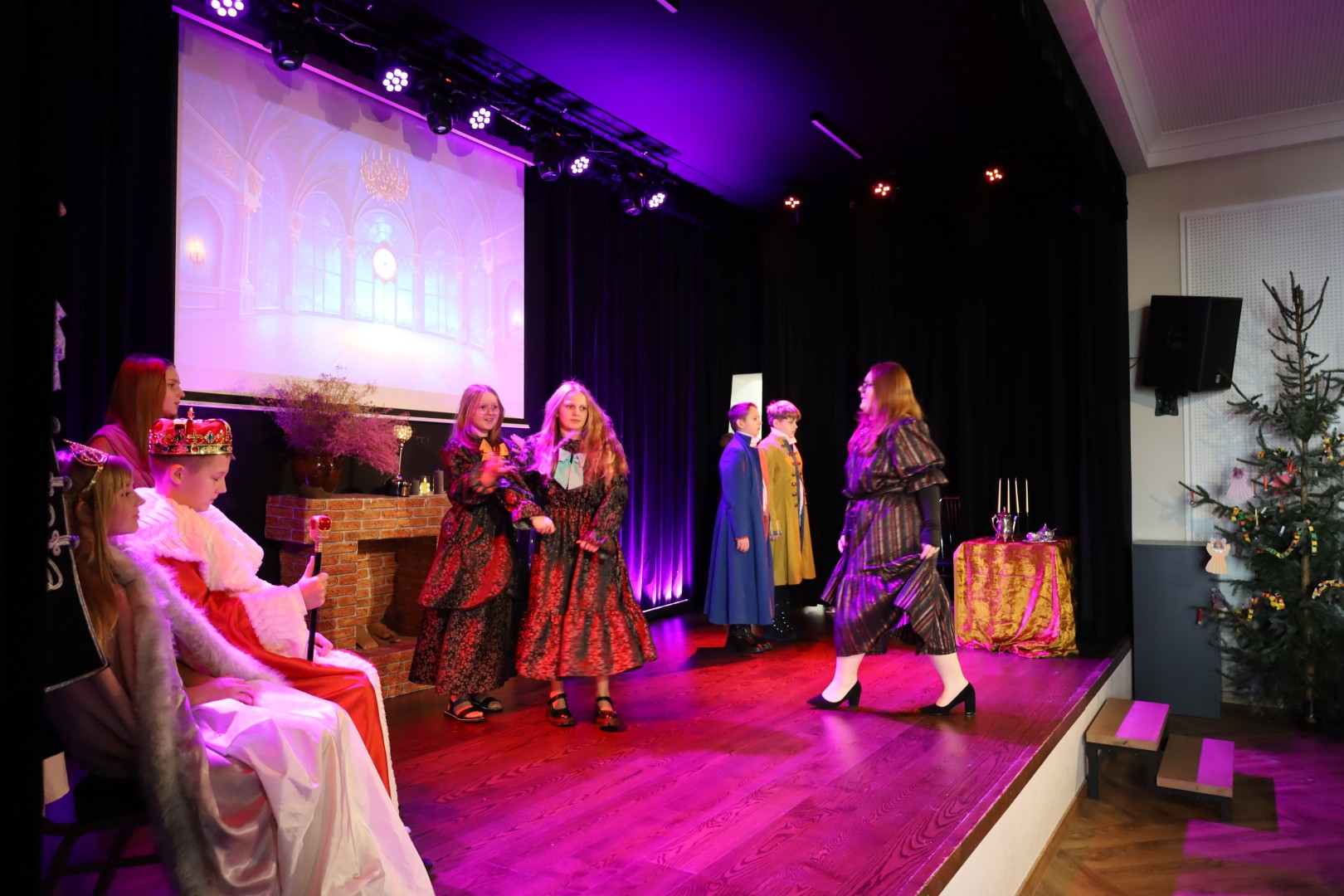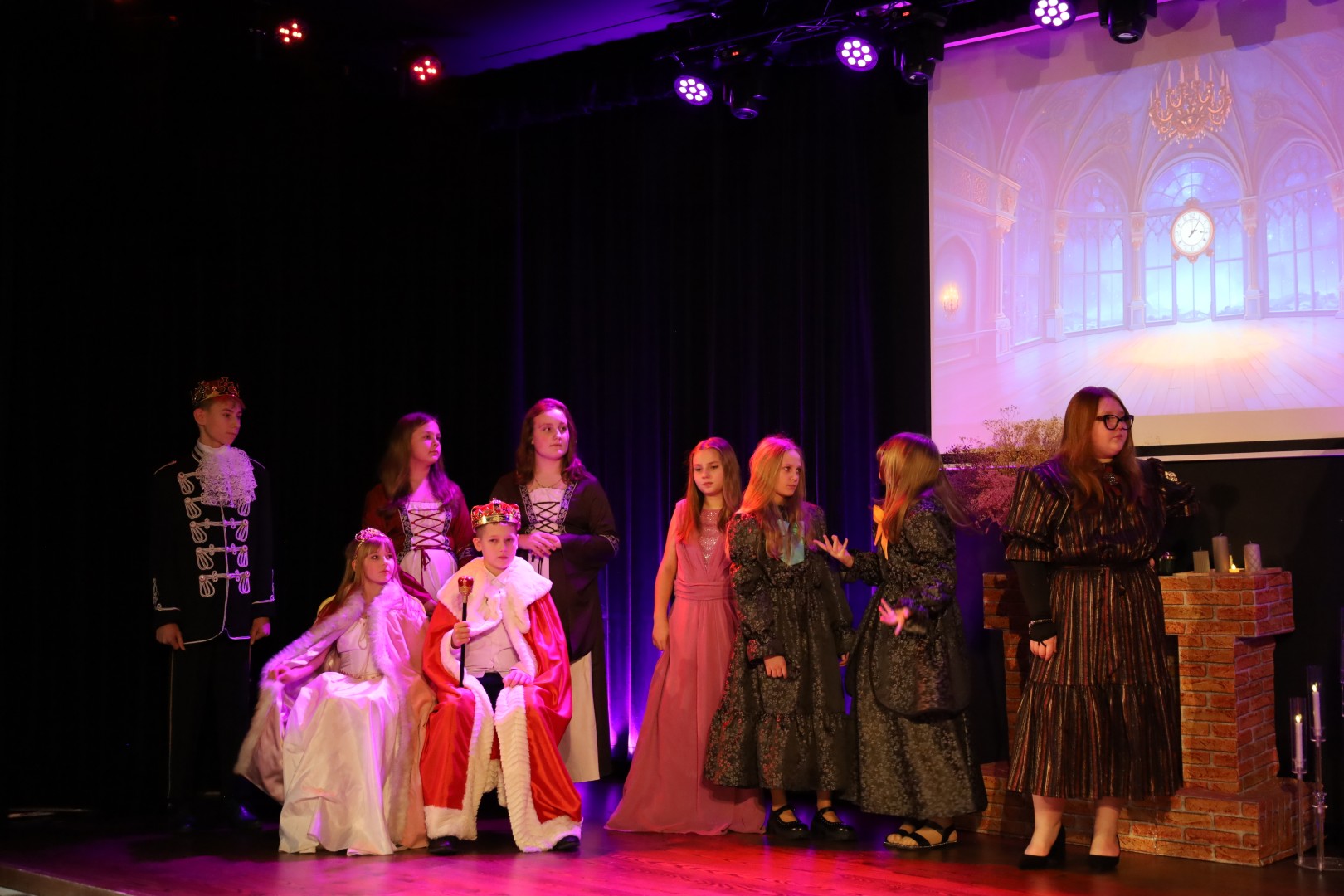 Dzięki uprzejmości p. Dyrektor OKiB w Moszczenicy spektakl mógł zostać zaprezentowany w Domu Młodzieży na scenie z kurtyną. Światła i inne efekty specjalne pozwoliły na to, by przedstawienie było jeszcze bardziej widowiskowe. Uczniowie (uczestnicy zajęć teatralnych) mogli poczuć się jak prawdziwi aktorzy.