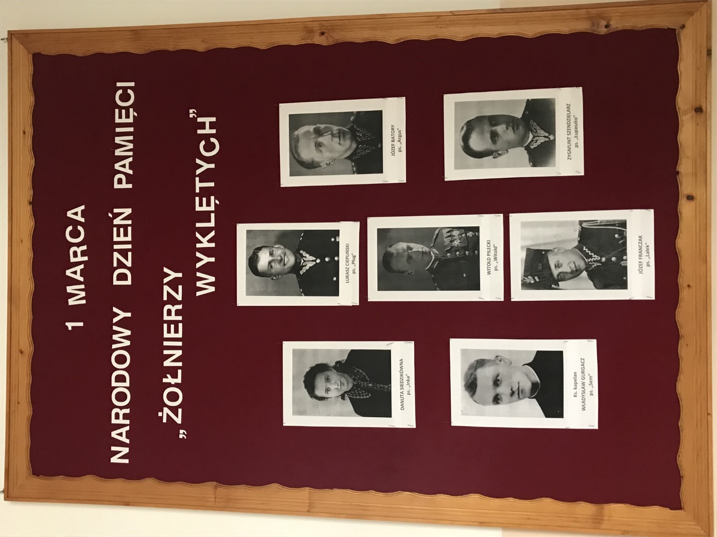 Motywem przewodnim uroczystego apelu, który odbył się w naszej szkole z okazji Narodowego Dnia Pamięci „Żołnierzy Wyklętych” była historia losów jednego z NIEZŁOMNYCH BOHATERÓW – Witolda Pileckiego. Był on bardzo zasłużonym bojownikiem o wolność ojczyzny, gdyż walczył m.in. w wojnie z bolszewikami, uczestniczył w kampanii wrześniowej, zgłosił się na ochotnika do obozu w Auschwitz oraz brał udział powstaniu warszawskim. Po wojnie działał w konspiracji, za co został aresztowany i po sfałszowanym procesie zamordowany przez funkcjonariuszy Urzędu Bezpieczeństwa w więzieniu na Mokotowie.