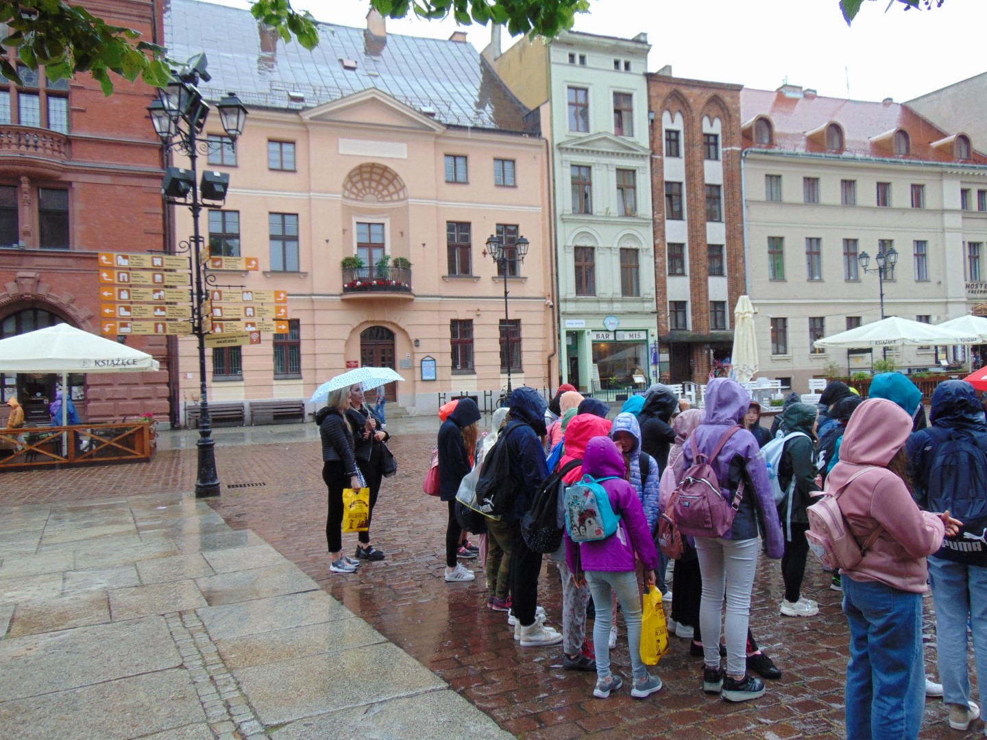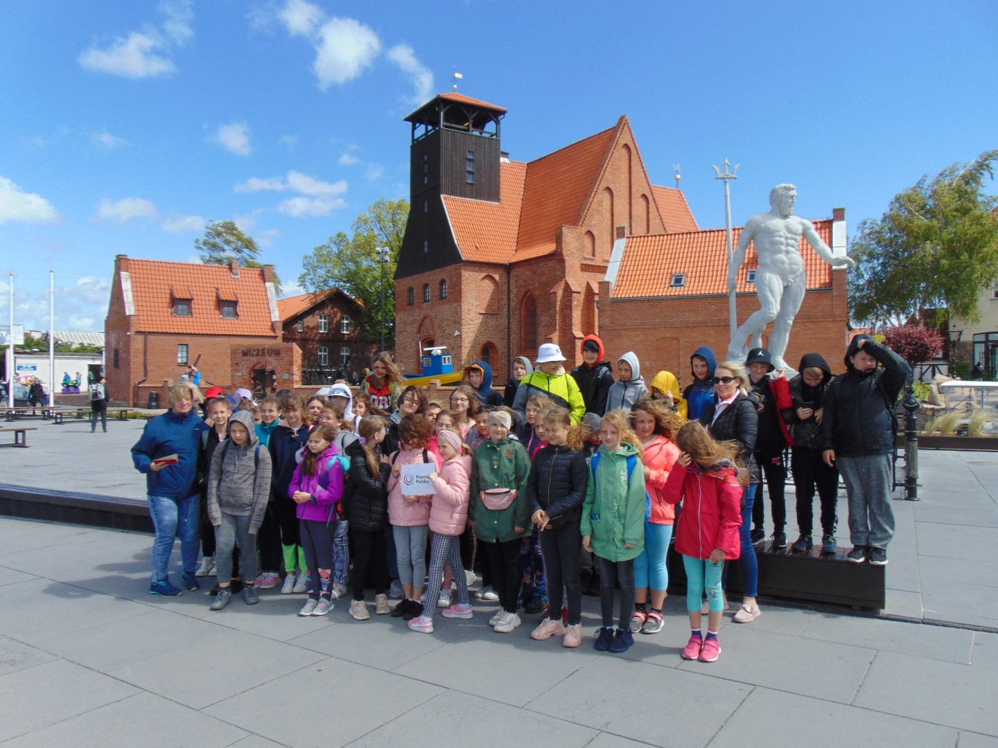 W sobotę 28 maja musieliśmy pożegnać się z morzem i rozpoczęliśmy podróż do domu. Kilka godzin poświęciliśmy na zwiedzanie pięknego Torunia. Na początek podziwialiśmy Kolorowy Kosmos – widowisko w toruńskim Planetarium. Później pani przewodnik poprowadziła nas po najciekawszych miejscach w Toruniu. Nawet deszcz i zimno nie powstrzymało nas przez zobaczeniem toruńskiego Rynku z Ratuszem i fontanny flisaka z pomnikiem Mikołaja Kopernika. Pod Krzywą Wieżą sprawdzaliśmy swoje sumienia, byliśmy obok domu Kopernika. Zobaczyliśmy toruńskie kościoły i słynnego osiołka. Wysłuchaliśmy też kilku legend. Ale prawdziwa zabawa była w Domu Legend. Tam nie tylko ich wysłuchiwaliśmy, ale czynnie w nich braliśmy udział. Po obiedzie i zakupie toruńskich pierników wyruszyliśmy w długą drogę do domu. Ośmiodniowy wyjazd nie byłby możliwy bez dofinansowania z projektu Poznaj Polskę oraz dofinansowania w kwocie 5 tys. zł. z Gminy Moszczenica. Dziękujemy za wsparcie, które pozwoliło nam na wspaniały wypoczynek i zwiedzenie tak wielu pięknych miejsc w odległej dla nas części naszego pięknego kraju.