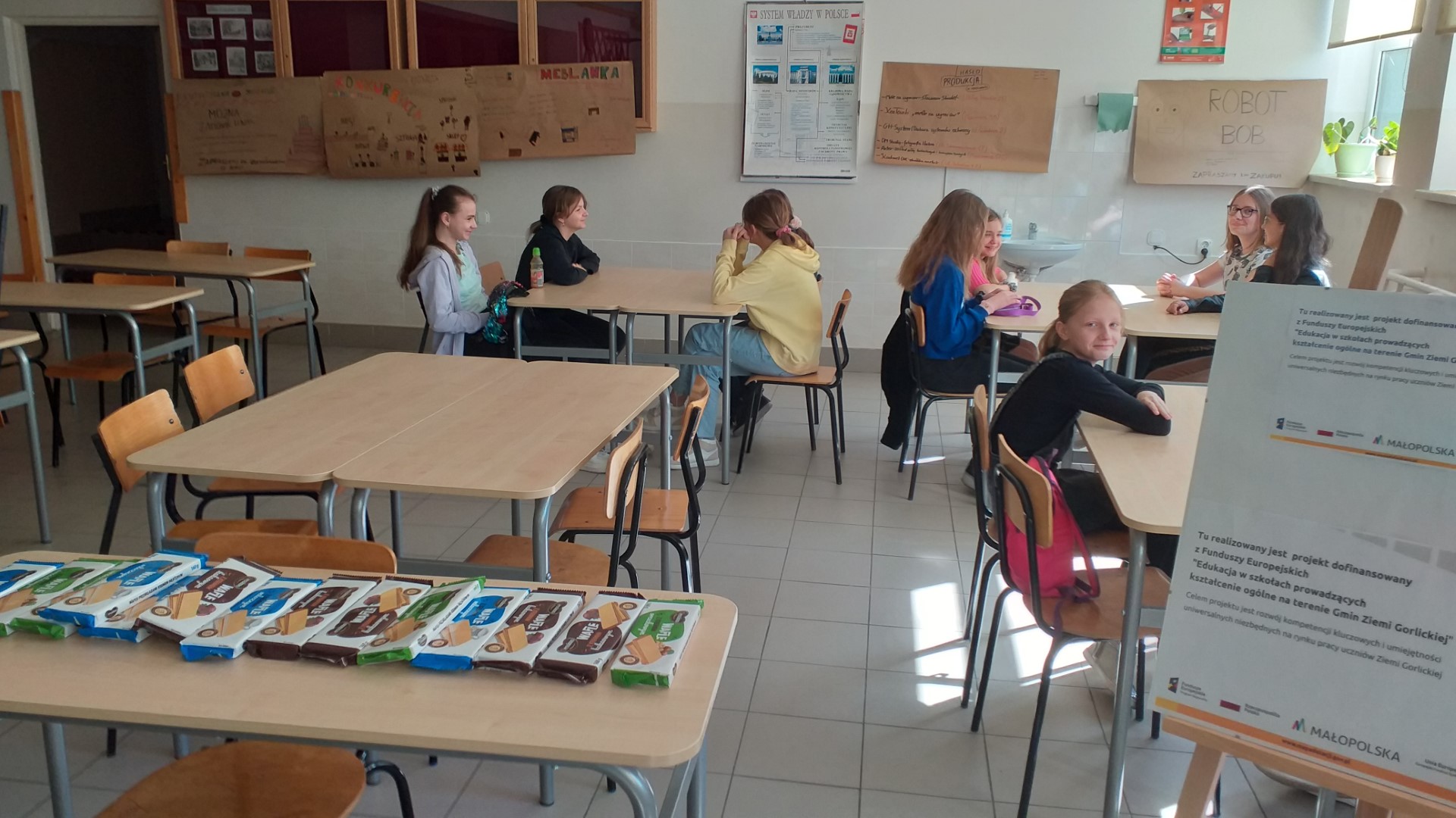Bardzo szybko nadszedł ostatni dzień zajęć w projekcie ,,Edukacja w szkołach prowadzących kształcenie ogólne na terenie Gmin Ziemi Gorlickiej” z zakresu „Inicjatywność i przedsiębiorczość” w tym roku szkolnym. W dniu 30 kwietnia kontynuowaliśmy moduł „Pieniądze i bankowość”. Po obejrzeniu filmów z cyklu „Podstawowe pojęcia ekonomiczne” dotyczących działań banków, w grupach tworzyliśmy plakaty pokazujące z czym nam kojarzy się bank komercyjny. Analizowaliśmy skąd się biorą pieniądze w banku, na czym polega udzielanie kredytów, co to jest zdolność kredytowa, na czym zarabiają banki. Zastanawialiśmy się jak przebiegają transakcje bezgotówkowe, jak działają karty debetowe i kredytowe, przelewy elektroniczne czy płatności telefonem. Dokonaliśmy podsumowania dwóch miesięcy zajęć, przypomnieliśmy sobie wszystkie nowe pojęcia z zakresu przedsiębiorczości. Czekamy teraz na wspólny wyjazd edukacyjny i kolejną część zajęć w kolejnym roku szkolnym. Do zobaczenia na zajęciach w październiku