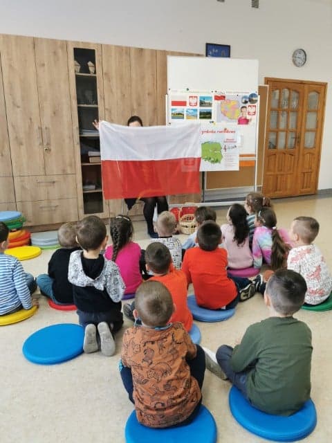 26 i 27 października przedszkolaki z grup Leśne Ludki i Wesołki zostały zaproszone na warsztaty patriotyczne do OKiB w ramach realizowanego tam projektu pt. "Kocham Polskę". Zajęcia poprowadziła pani Sabina Urbańska-Nadzionek. Dzieci wzięły udział w różnych zabawach i wykonały piękne prace plastyczne.