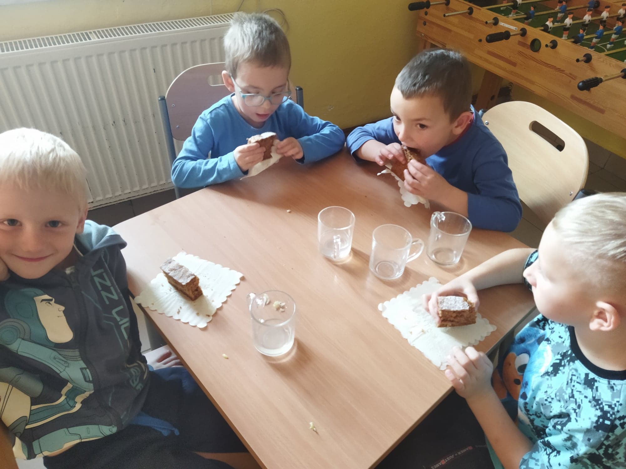 Dnia 24 października dzieci z grupy Wesołki razem ze swoją wychowawczynią panią Krysią upiekły pyszne i zdrowe ciasto marchewkowe. Jak się okazało, pieczenie ciasta, to nie taka trudna sprawa. Szczególnie, gdy do pomocy jest tyle małych i zdolnych rąk. Tak urozmaicone zajęcia zawsze przynoszą wiele radości, a własnoręcznie upieczone ciasto zjadły nawet największe niejadki.