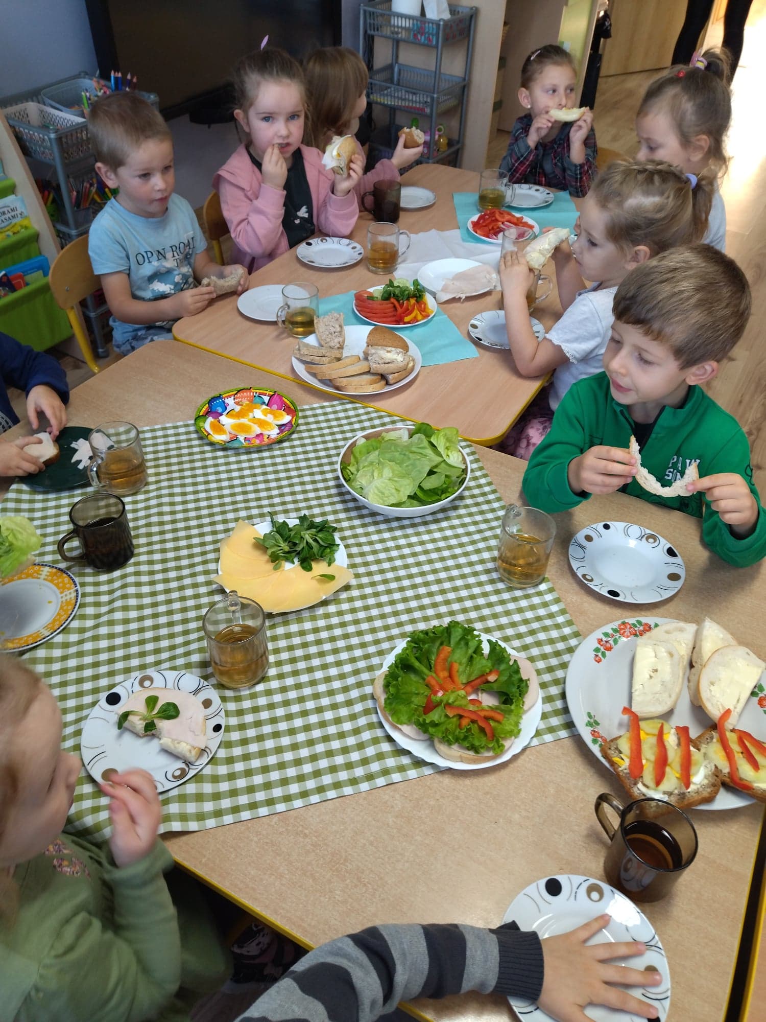 Aby zwiększyć świadomość przedszkolaków na temat roli zdrowego odżywiania nasze przedszkole włączyło się do ogólnopolskiej akcji edukacyjnej „Śniadanie daje moc”. W tym roku, przedszkolaki z grup młodszych najpierw przygotowały, a potem wspólnie spożywały śniadanie. W przygotowaniach ochoczo wsparli nas Rodzice naszych dzieci. Dzięki nim na naszych przedszkolnych stolikach znalazły się kolorowe smakołyki z których dzieci robiły kanapki. Nie zabrakło też miejsca na smakowite desery, na które przedszkolaki czekały z niecierpliwością.