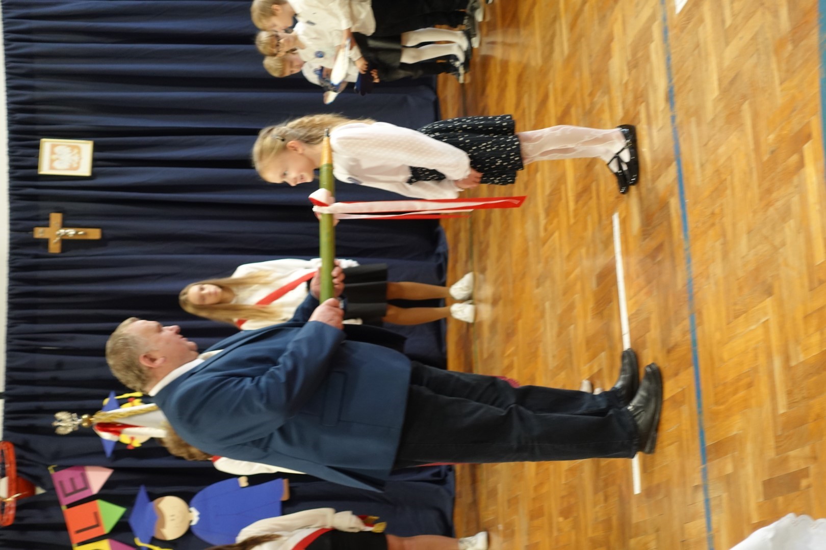 Uroczystość rozpoczęła się wprowadzeniem sztandaru Szkoły i wspólnym odśpiewaniem Hymnu Narodowego.