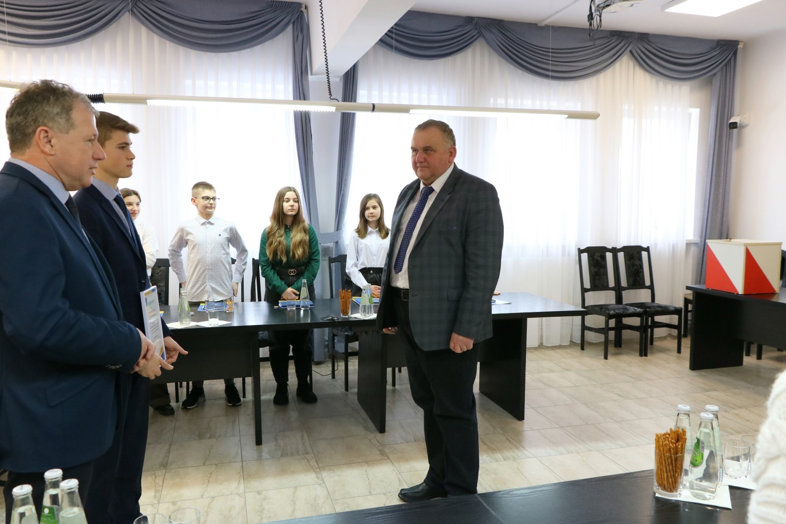 Na zakończenie sesji Pan Wójt i Kamil Jędrzejowski podziękowali uroczyście Dyrektorowi Zespołu Szkół w Moszczenicy Panu Witoldowi Bogdanowi za jego wkład pracy i dziesięcioletnią opiekę nad Młodzieżową Radą Gminy I-V kadencji.
