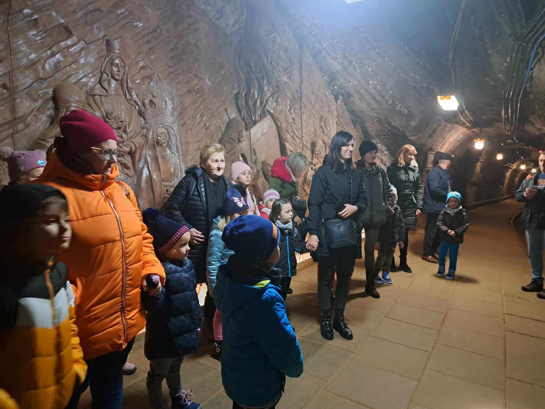 Dnia 02 grudnia 2023r. przedszkolaki z grupy Jagódki wraz z rodzicami wybrały się na wycieczkę do Kopalni Soli w Bochni – najstarszej kopalni soli w Polsce. Na początku dzieci zjechały windą do podziemi kopalni oraz jechały podziemną kolejką, a następnie przemierzały pieszo komory solne o charakterystycznym kształcie tworzące podziemne miasto. Poznały legendę o Św. Kindze, dowiedziały się również, jak wygląda praca górników. W kopalni na dzieci czekało mnóstwo atrakcji, a na zakończenie przedszkolaki spotkały się ze Świętym Mikołajem od którego otrzymały drobne prezenty.