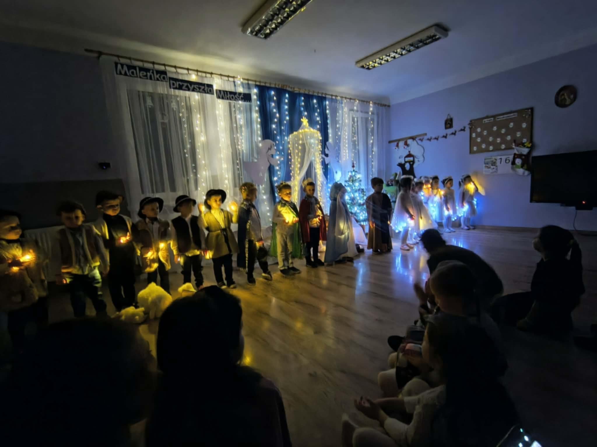 19 grudnia w naszym przedszkolu obchodziliśmy jeden z najpiękniejszych dni w roku – Wigilię Bożego Narodzenia. W salach przedszkolnych dzieci dzieliły się opłatkiem, składały sobie życzenia, a następnie zasiadły do stołów, na których czekał świąteczny obiad. Nie zabrakło również wspólnego kolędowania. Czas upłynął w bardzo miłej, serdecznej atmosferze.